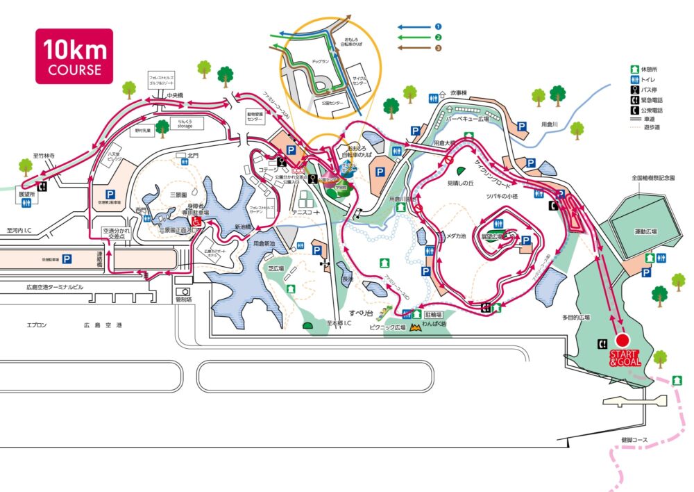 広島空港を見渡せるポイントもあり、景色も楽しめます。